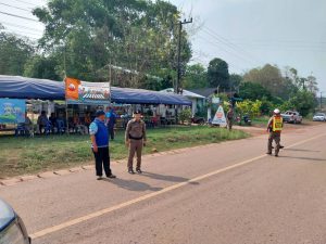 วันที่ ( ๑๔ เมษายน ๒๕๖๗ )เวลา ๑๕.๐๐ น.นาย ทวี. ชิณรงค์ นายอำเภอปากคาด,พ.ต.อ.ศิวัช. วรคุตตานนท์ ผกก.สภ.ปากคาด , พ.ต.ท.ชาติชาย. วัฒนาสุข รอง ผกก.ป.สภ.ปากคาด เดินทางมาตรวจเยี่ยม จุดบริการประชาชนช่วงเทศกาลสงกรานต์ ประจำปี ๒๕๖๗ ณ จุดบริการประชาชน หน้า อบต.นาดง เพื่อเป็นขวัญกำลังใจ พร้อมได้มอบนโยบาย. ให้คำแนะนำในการปฏิบัติหน้าที่ และพบปะพูดคุยให้กำลังใจเจ้าหน้าที่ผู้ปฏิบัติงาน โดยมี จนท.ตำรวจ , อปพร. ให้การต้อนรับ เหตุการณ์ทั่วไปปกติ