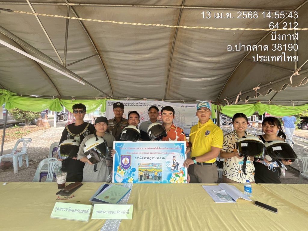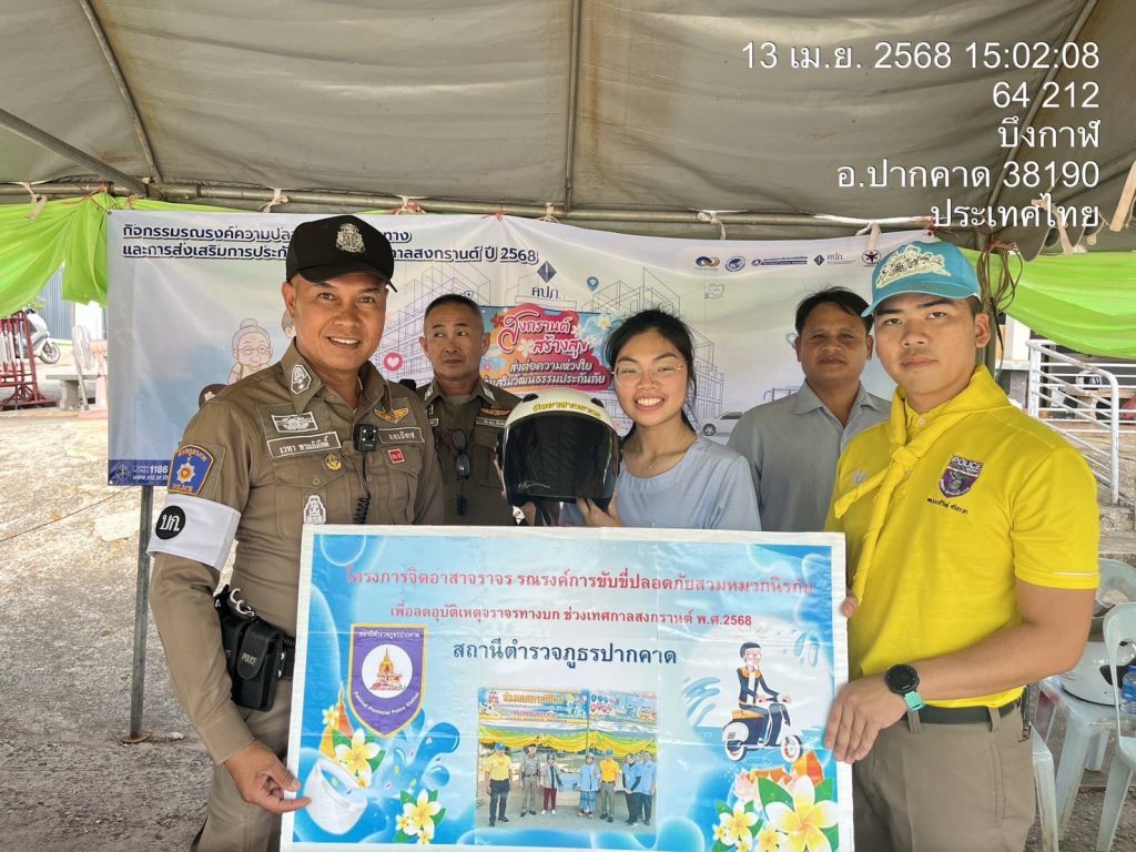 มอบหมายให้ พ.ต.อ.ศิวัช วรคุตตานนท์ ผกก.สภ.ปากคาด ดำเนินการมอบหมวกนิรภัย จำนวน 28 ใบ และประชาสัมพันธ์การขับขี่อย่างปลอดภัย ตามโครงการจิตอาสาจราจร รณรงค์การขับขี่ปลอดภัย สวมหมวกนิรภัย เพื่อลดอุบัติเหตุจราจรทางบก ในช่วงเทศกาลสงกรานต์ พ.ศ.2568 ณ จุดบริการป้อมยามบัวบาน ต.โนนศิลา อ.ปากคาด จ.บึงกาฬ
