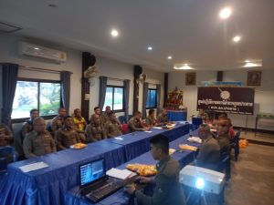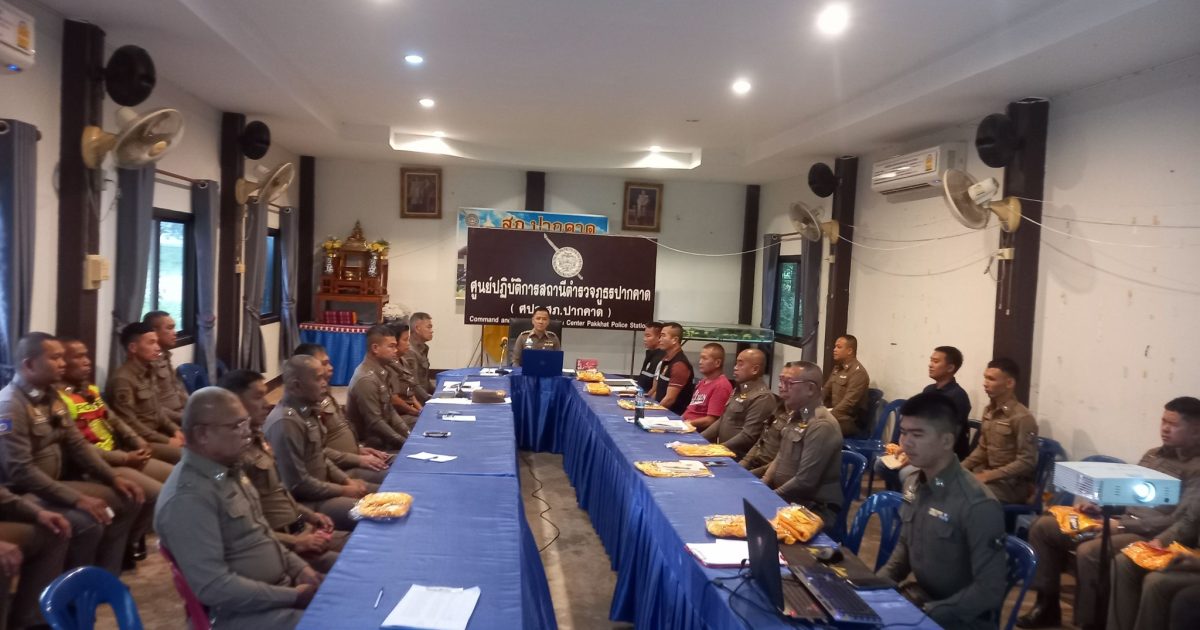 พ.ต.อ.ศิวัช วรคุตตานนท์ ผกก.สภ.ปากคาดประชุมประจำเดือน สภ.ปากคาด ชี้แจงนโยบายข้อสั่งการ ขับเคลื่อนการทำงาน ITA และนโยบายข้อสั่งการเกี่ยวอาชญากรรมทางเทคโนยีอื่นๆ จาก ตร.,บช. และ บก. ให้แก่ข้าราชการตำรวจ สภ.ปากคาด