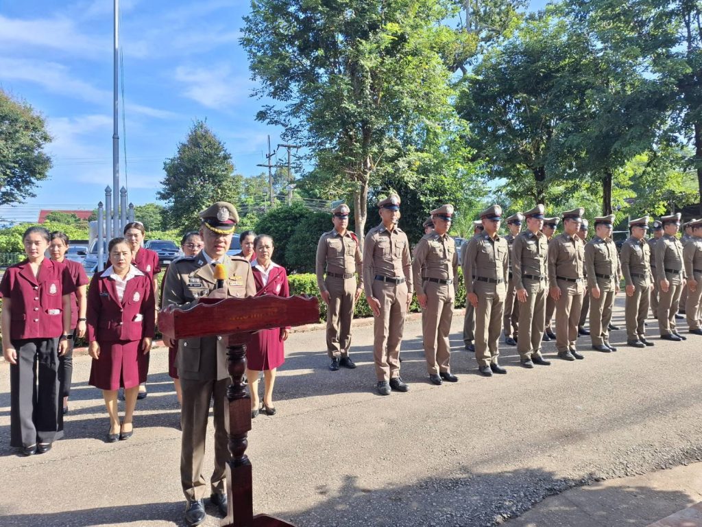 -ไหว้พระพุทธรูปพระจำ สภ.-ไหว้ศาลพระภูมิเจ้าที่ -เคารพธงชาติ-กล่าวคำปฏิญาณและอุดมคติตำรวจ,ร้องเพลงมาร์ชตำรวจ-อ่านสารวันตำรวจ