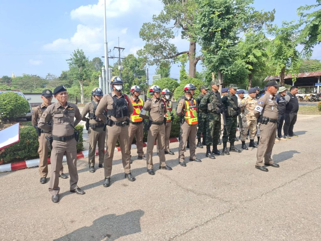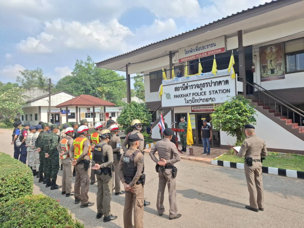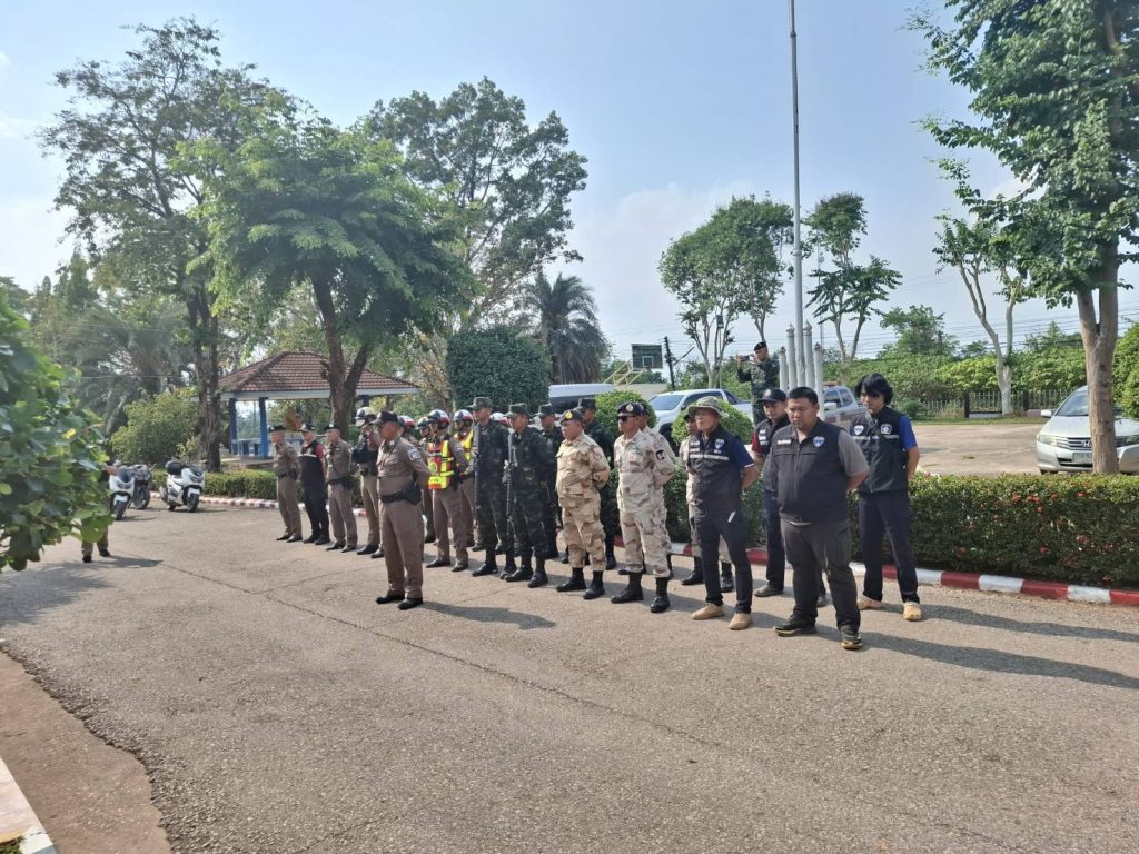 พล.ต.ต.วิญญู อำนวยสมบัติ ผบก.ภ.จว.บึงกาฬ พ.ต.อ.อารัก มะสาธานัง รอง ผบก.ภ.จว.บึงกาฬ พ.ต.อ.ชัยยุทธ ธรรมสุนา รอง ผบก.ภ.จว.บึงกาฬ พ.ต.อ.ศิวัช วรคุตตานนท์ ผกก.สภ.ปากคาด มอบหมายให้ พ.ต.ท.ชาติชาย วัฒนาสุขรอง ผกก.ป.ฯ พ.ต.ท.ศักดิ์สิทธิ์ ฤทธิ์มหา รอง ผกก.สส.ฯ. พร้อม สายตรวจ จราจร ชุดสืบสวน ร่วมกับ ฝ่ายทหาร ฝ่ายปกครอง และหน่วยงานที่เกี่ยวข้อง ร่วมพิธีปล่อยแถวระดมกวาดล้างอาชญากรรม เพื่อประชาสัมพันธ์ ป้องกันปราบปรามเหตุอาชญากรรม การรักษาความสงบเรียบร้อย การบังคับใช้กฎหมาย และอำนวยความสะดวกด้านการจราจร ช่วงเทศกาลวันสงกรานต์ 2568 ( 11-17 เม.ย.68)