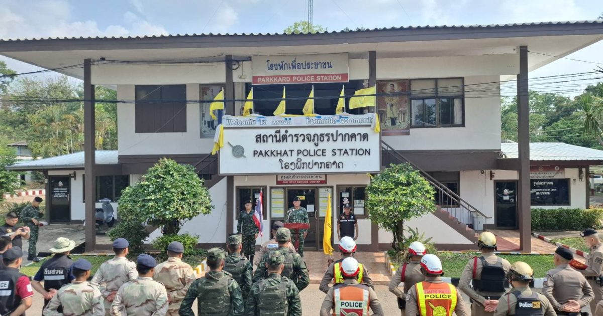 พล.ต.ต.วิญญู อำนวยสมบัติ ผบก.ภ.จว.บึงกาฬ พ.ต.อ.อารัก มะสาธานัง รอง ผบก.ภ.จว.บึงกาฬ พ.ต.อ.ชัยยุทธ ธรรมสุนา รอง ผบก.ภ.จว.บึงกาฬ พ.ต.อ.ศิวัช วรคุตตานนท์ ผกก.สภ.ปากคาด มอบหมายให้ พ.ต.ท.ชาติชาย วัฒนาสุขรอง ผกก.ป.ฯ พ.ต.ท.ศักดิ์สิทธิ์ ฤทธิ์มหา รอง ผกก.สส.ฯ. พร้อม สายตรวจ จราจร ชุดสืบสวน ร่วมกับ ฝ่ายทหาร ฝ่ายปกครอง และหน่วยงานที่เกี่ยวข้อง ร่วมพิธีปล่อยแถวระดมกวาดล้างอาชญากรรม เพื่อประชาสัมพันธ์ ป้องกันปราบปรามเหตุอาชญากรรม การรักษาความสงบเรียบร้อย การบังคับใช้กฎหมาย และอำนวยความสะดวกด้านการจราจร ช่วงเทศกาลวันสงกรานต์ 2568 ( 11-17 เม.ย.68)