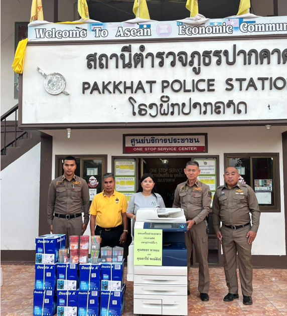 วันที่( 5 ก.พ.68 ) เวลา 17.30 น. นายชยธร ทาทอง กต.ตร.สภ.ปากคาด และนางอารีย์ พงษ์สังข์ ได้มอบเครื่องถ่ายเอกสาร และอุปกรณ์อื่นๆ กระดาษA4 ปากกา ให้แก่ สภ.ปากคาด เพื่อใช้ในงานราชการ และกิจการตำรวจ โดย พ.ต.อ.ศิวัช วรคุตตานนท์ ผกก.สภ.ปากคาด มอบหมายให้ พ.ต.ท.ชาติชาย วัฒนาสุข รอง ผกก.ป.สภ.ปากคาด เป็นผู้รับมอบ- ณ บริเวณหน้า สภ.ปากคาด