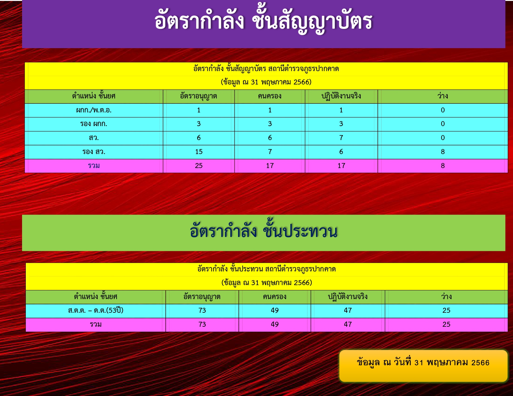 ข้อมูล ณ วันที่ 31 พฤษภาคม 2566