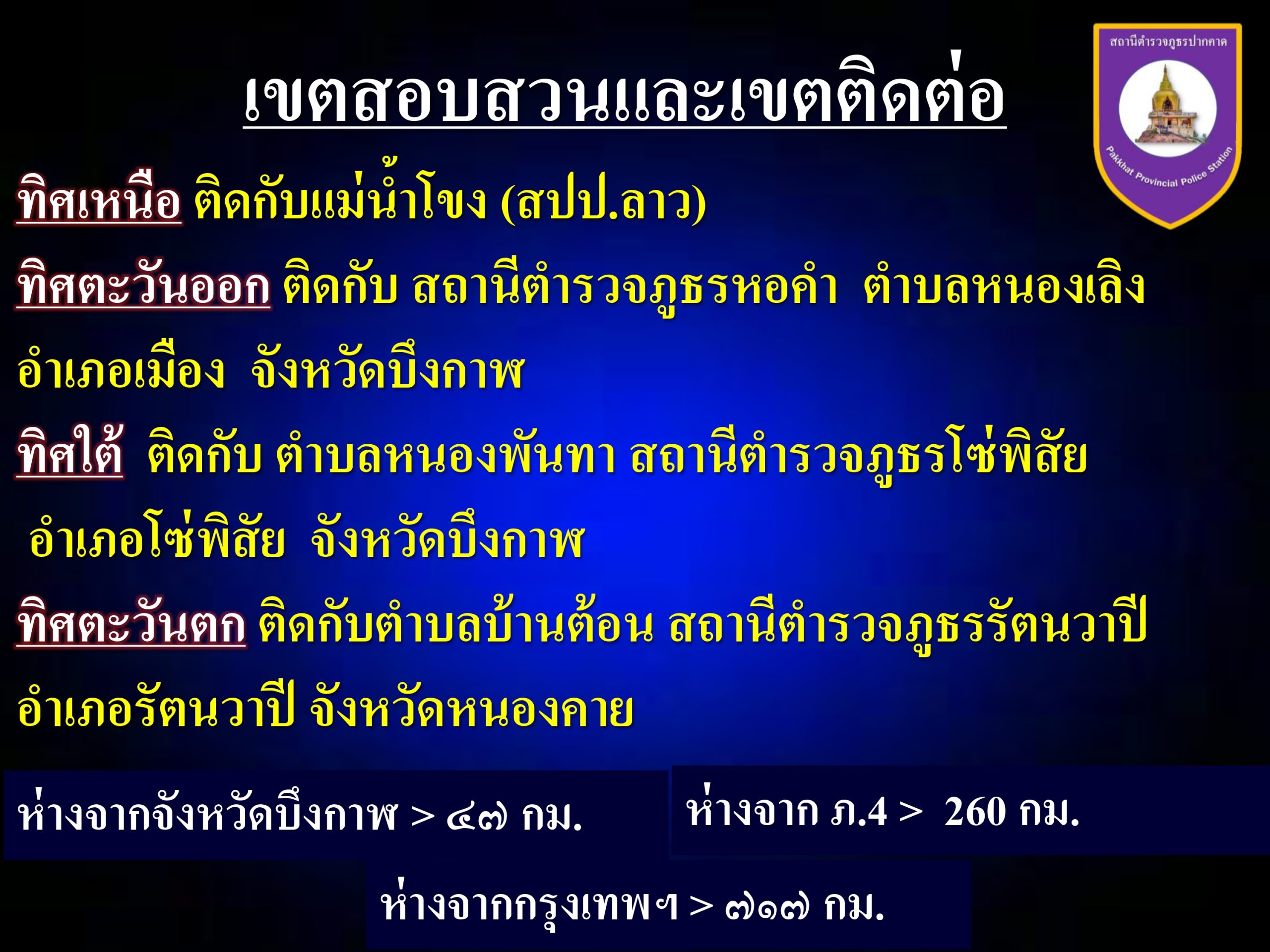 รวมพื้นที่ อำเภอปากคาด มีเนื้อที่ 276 ตารางกิโลเมตร